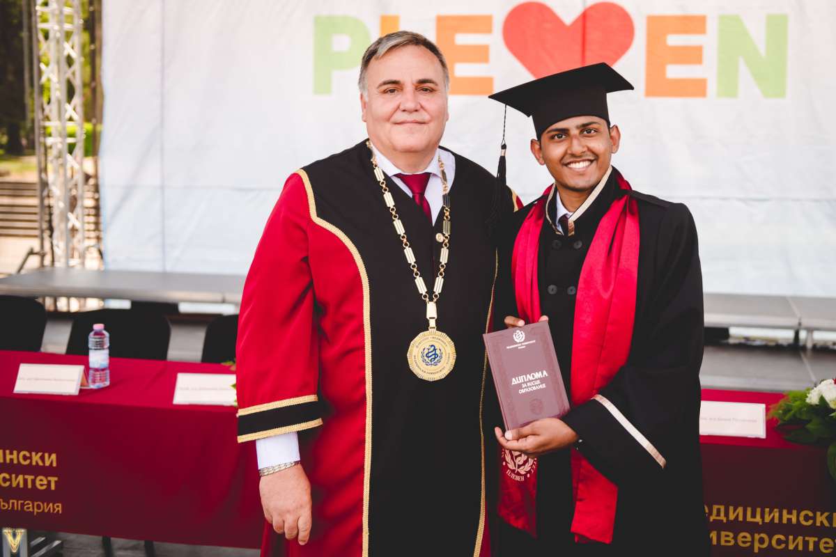 След успешно завършен 6-годишен курс на обучение по специалност „Медицина” изцяло на английски език, 151 чуждестранни дипломанти от Випуск 2017-2023 на Факултет „Медицина” придобиват образователно-квалификационна степен „Магистър” и професионална квалификация „лекар”. Младите чуждестранни лекари са граждани на 20 държави: Англия, Индия, Германия, Италия, Канада, Швеция, Ирландия, Япония, Холандия, Португалия, Швейцария, САЩ, Нигерия, Австралия, Дания, Ирак, Ливан, Пакистан, Испания и Турция. Средният успех на випуска е много добър, с висок брой отличници – 13. Те ще бъдат наградени с плакет „Отличник” на Факултет „Медицина”, луксозни дипломи, грамоти, апарати за кръвно налягане и стетоскопи. Трима от отличниците – д-р Мишел Бернард да Силва, д-р Ананя Мехта и д-р Чандини Виджайкуруп – са носители на престижните награди „Най-изявен студент“ 2019 и 2022 година и „Чуждестранен студент на годината“ 2022 г., които са под патронажа на президента на Р България.