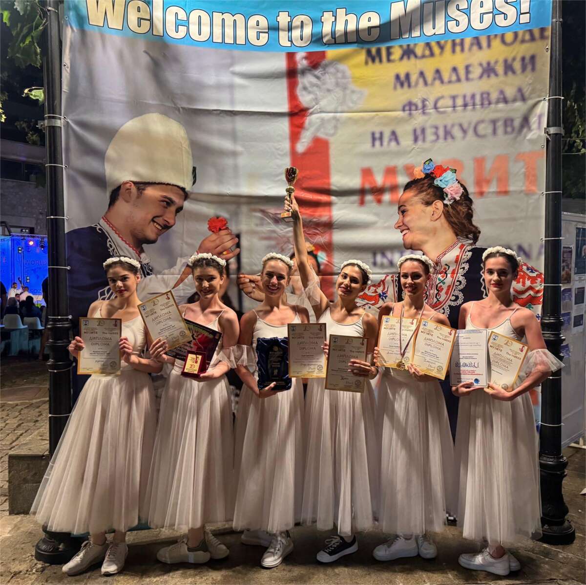 Балерини от Балетното студио при читалище „Съгласие 1869“ – Плевен, се върнаха с престижни награди от ХХ-я Международен фестивал на изкуствата “Музите”, който се провежда в град Созопол от 4 до 15 юли 2025 г. Талантливите плевенски момичета бяха удостоени с 1 място в раздел “Класика” (групово). Лилия Чорбанска спечели 2 място с индивидуалното си изпълнение на вариация, а в раздел “Съвременни танци” момичетата спечелиха 3 място (групово). Фондация “БН Артин Нигохосян” удостои плевенчани със Специална награда за върхови постижения. С Диплом за постиженията на нейните възпитаници беше удостоена Маня Николова – главен художествен ръководител и хореограф на танците. Съставът получи и покана за участие в предстоящ конкурс.