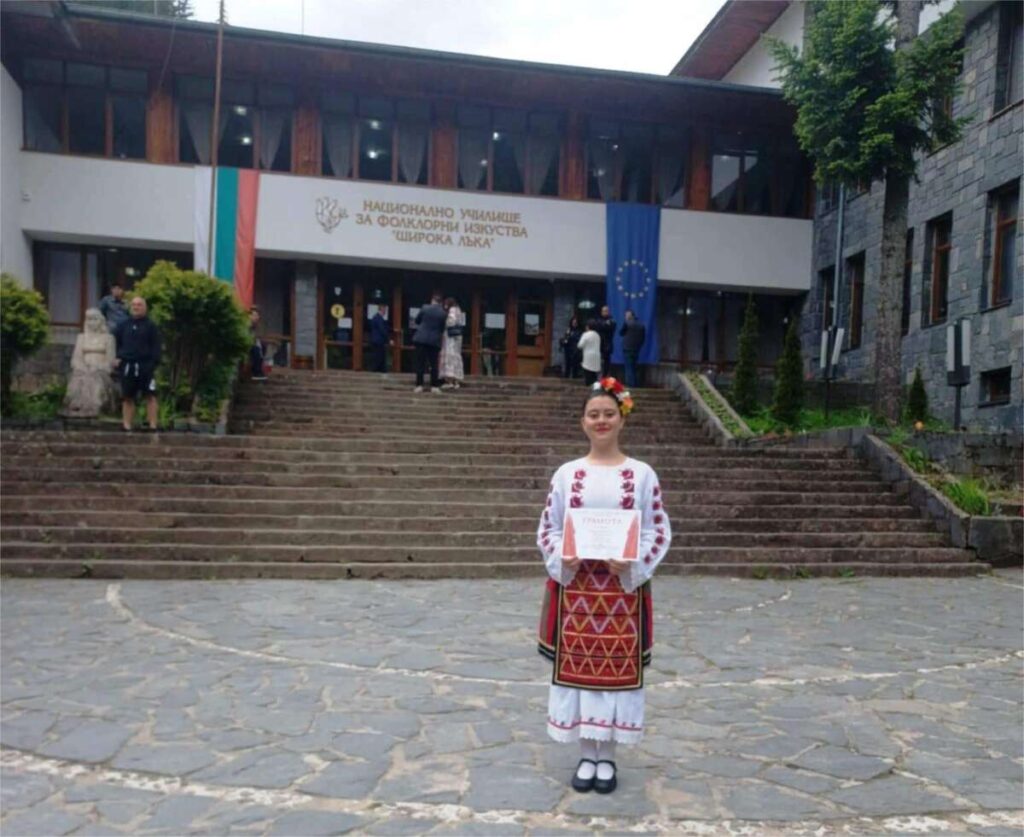 Цветислава Денова от 8 клас е удостоена с бронзов медал за чудесното си представяне с песните “Авлига пее” и „Юрдан на Радка думаше” от репертоара на сладкогласната Мита Стойчева. Цветислава също се представя представя отлично на НК „Орфеево изворче” – Стара Загора, през месец април.