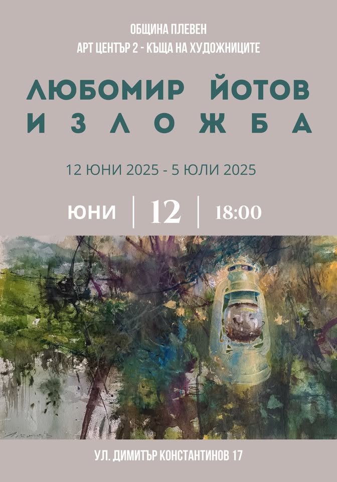 Плевенският майстор на четката Любомир Йотов ще открие изложба в Къщата на художниците в Плевен (ул. “Димитър Константинов” 17). Експозицията ще представи интересни акварели и маслени творби. Художественото събитие ще е на 12 юни (четвъртък), от 18:00 часа.