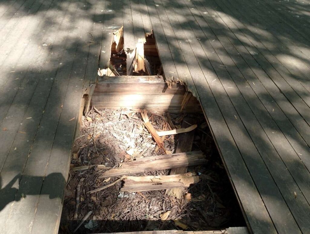 Счупена е дървената сцена за артизяви на Площадката на целувките в парк “Кайлъка”. В подиума на открито зее голяма дупка, която на практика не позволява провеждането на каквито й да е културни мероприятия там.
