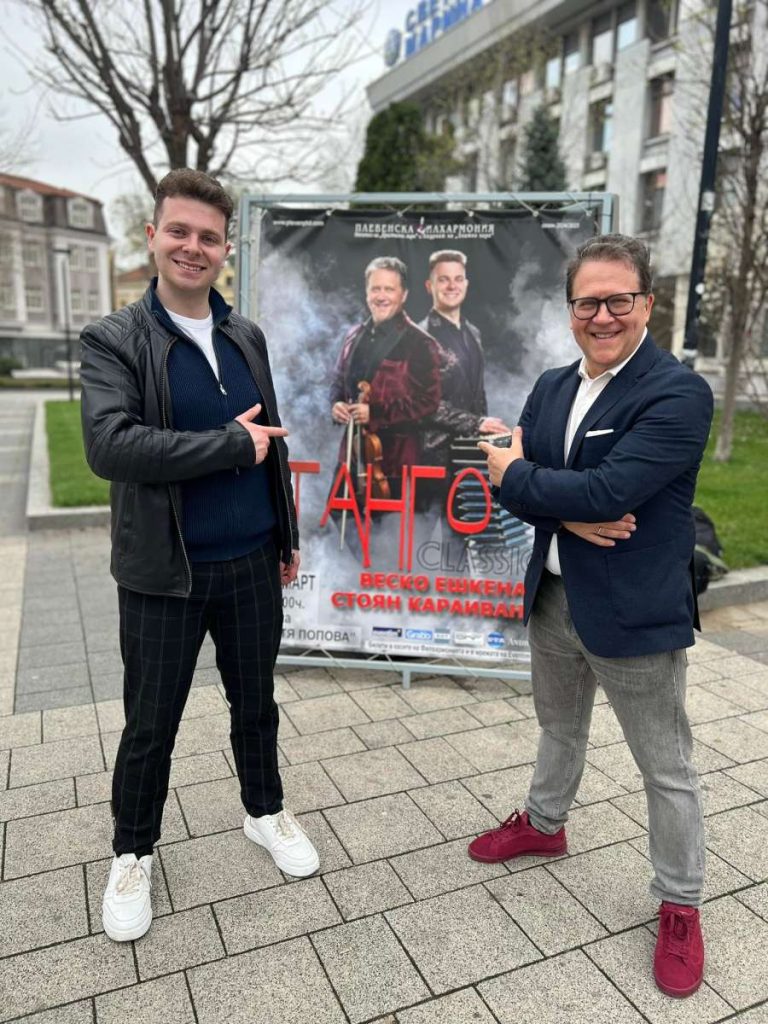 В центъра на това музикално събитие ще са виртуозните солисти Веско Ешкенази – цигулка, и Стоян Караиванов – бандонеон, заедно с музиканти от състава на Плевенската филхармония и танго танцьори. Обединени в едно красиво преживяване, те ще разкажат историята на тангото с произведения от класиката, филмовата музика и световните танго мелодии. В аранжимент за цигулка, бандонеон и камерен оркестър ще прозвучат произведения от Моцарт, Освалдо Пулиезе, Астор Пиацола и др.
