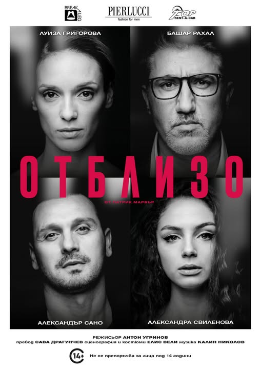 Театралната версия на филма „Отблизо“ ще бъде представена в град Левски на 7 март, от 19:00 часа, на сцената на НЧ „Георги Парцалев 1901“. В постановката ще се изявят актьорите Александър Сано, Луиза Григорова, Башар Рахал и Александра Свиленова.