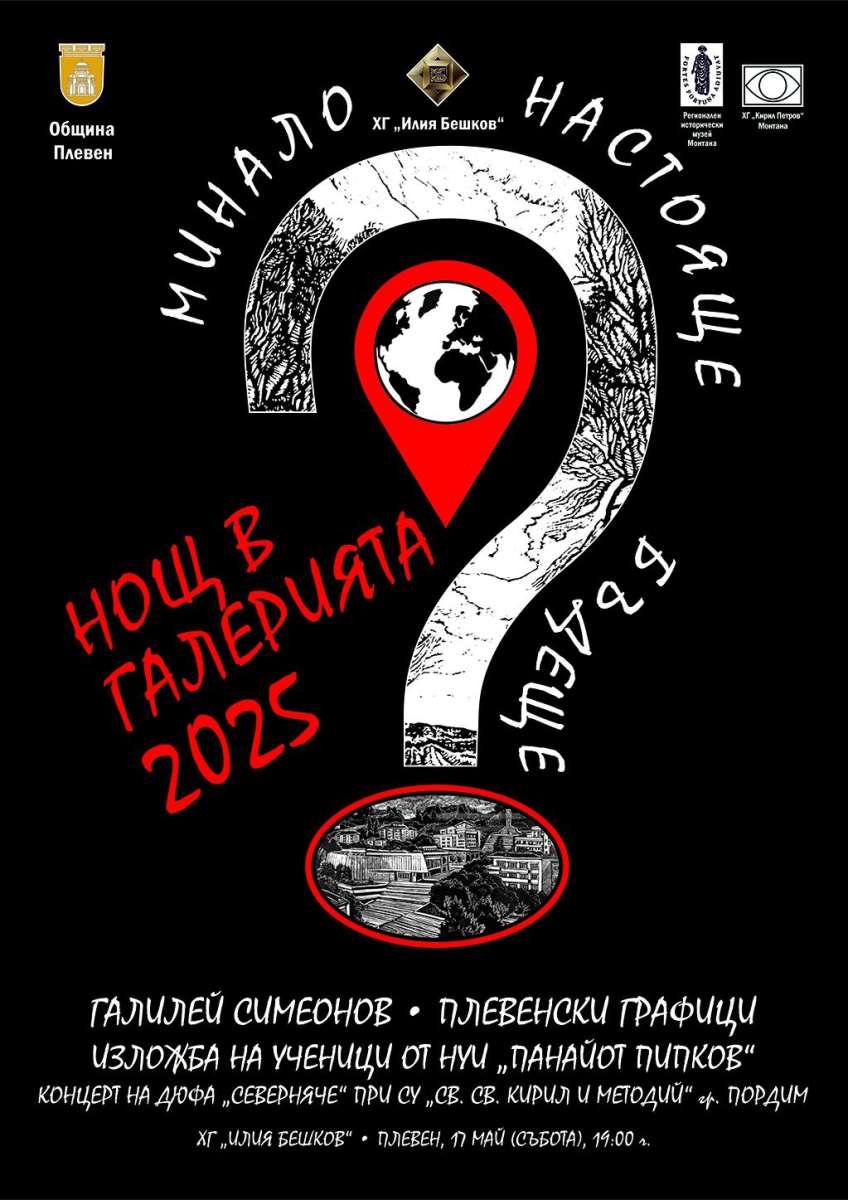 Три изложби и концерт на Детско-юношески ансамбъл “Северняче” при СУ “Св. Св. Кирил и Методия” – гр. Пордим, ще предложи ХГ “Илия Бешков” – Плевен в Европейската нощ на галериите – 17 май.